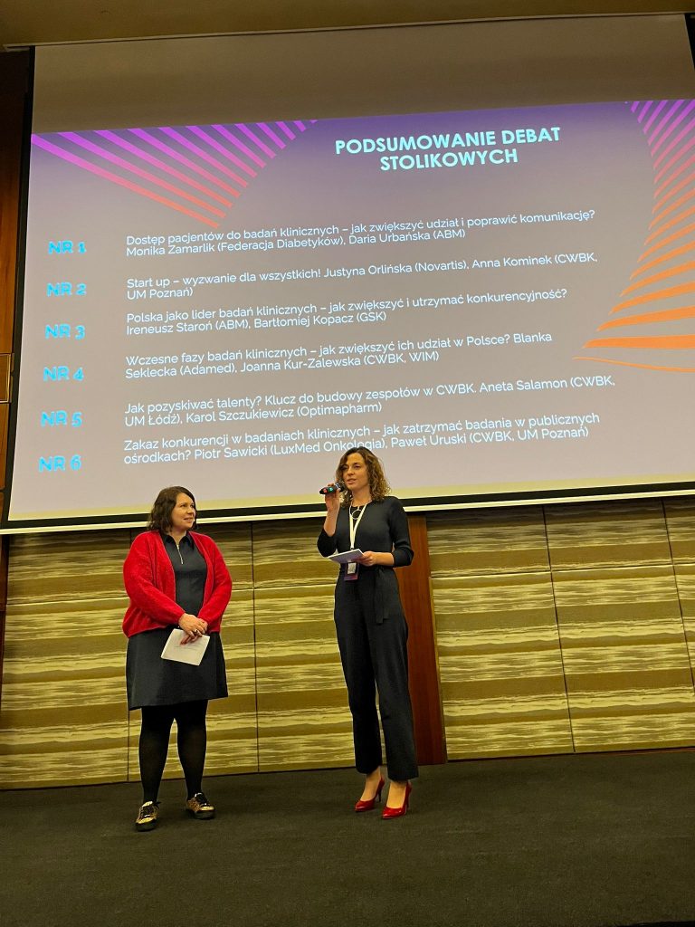 Jednym z ważnych elementów warunkujących przyszłość i rozwój badań klinicznych są start-upy, a dyskusję na ich temat moderowały dr n.med. Anna Kominek – Zastępca Dyrektora z naszego UCWBK i Justyna Orlińska z Novartis Poland. Z owocnych dyskusji przy ich stoliku wybrzmiało, że kluczem do sprawnego procesu jest… komunikacja! Dzięki niej szybciej rozwiązujemy problemy i sprawniej reagujemy na wyzwania.